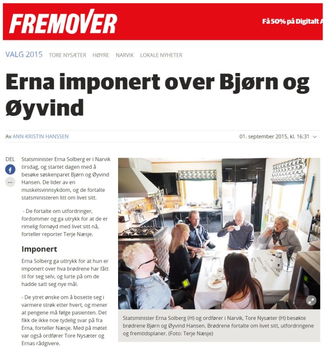 Første media som dekket statsministerbesøket var lokalavisa Fremover. De klarer å misse hele poenget med at vi har fått BPA, og endelig kan få styre livene våre selv. De melder for øvrig at Erna er imponert over hva vi har fått til. Ut over dagen følger vi med på nettutgavene til VG og Dagbladet. Ingen nevner saken. Når VG nevner valget fra Narvik, fokuserer de på personkonflikter mellom bystyrerepresentanter, og at Aps ordførerkandidat fridde fra talerstolen på nominasjonsmøtet. Ingen politikk, bare tabloid tull. Etter å ha lest gjennom papirutgavene til VG og Dagbladet som kom ut dagen etter, klarer jeg ikke å sette ord på hvor skuffet jeg er. Heller ikke her nevnes besøket hos oss. I dagens aviser er det bare drittkasting, personfokus og sensasjoner som slår an.